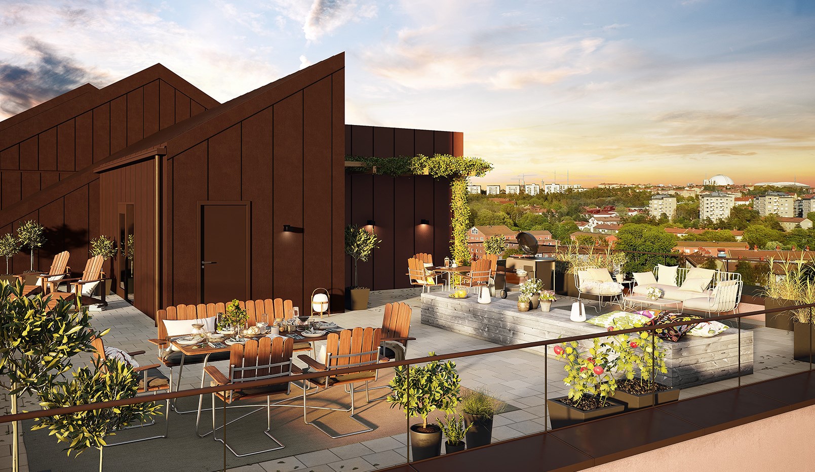 Här kommer du att hitta kvadratsmarta ettor om ca 30 kvm, minitvåor på cirka 40 kvm och lite större tvåor på cirka 55 kvm. Trerummare på cirka 78 kvm och fyrarummare på cirka 100 kvadratmeter. På taket blir det en stor gemensam terrass med utekök och grillplats - och underbar utsikt över Stockholms skyline.