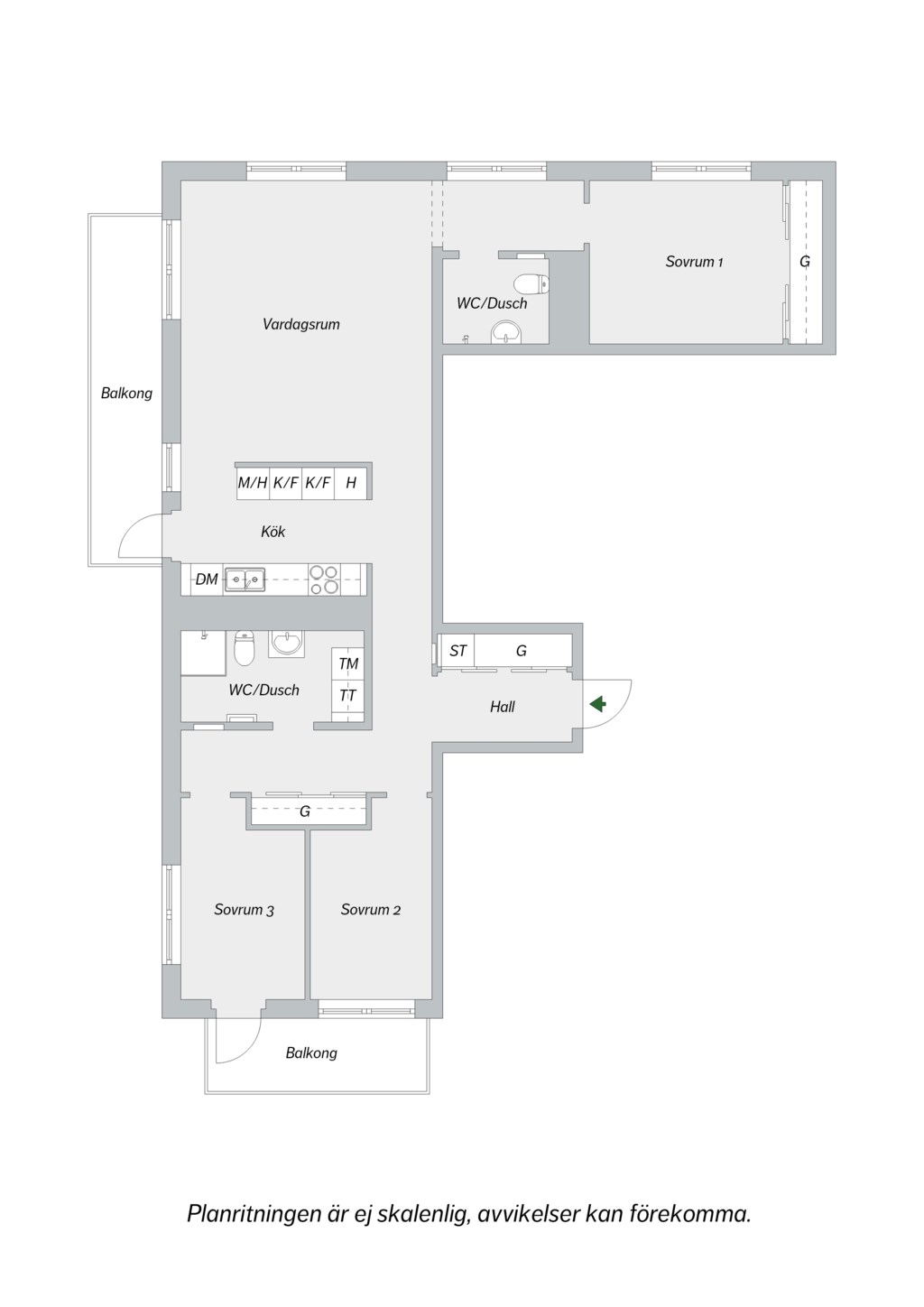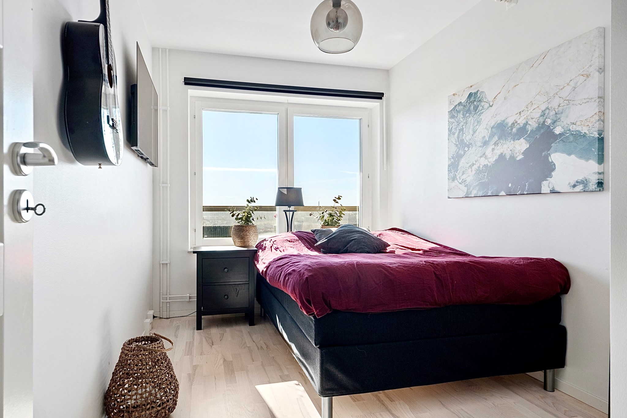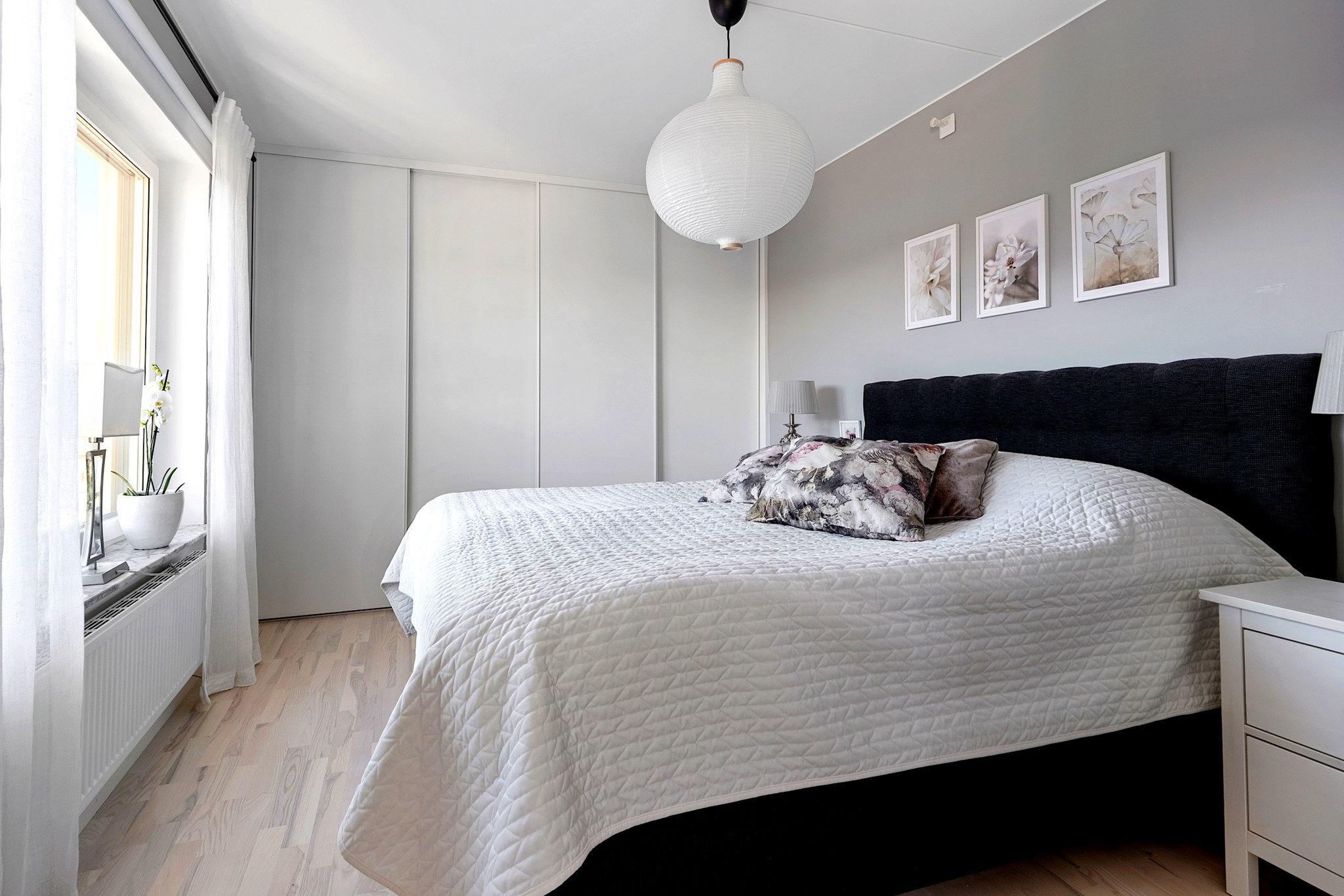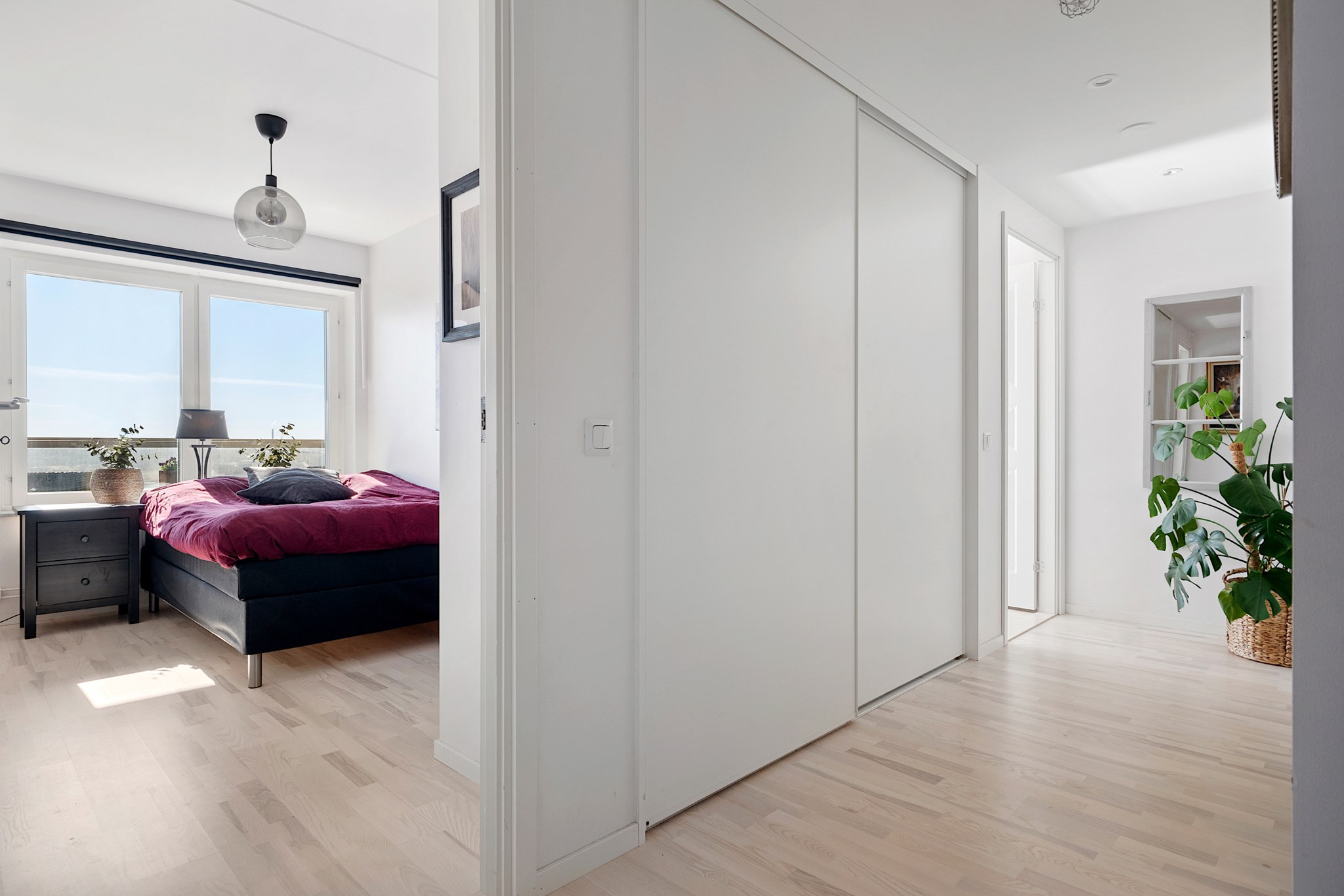Lägenheten rymmer tre trivsamma sovrum, placerade i varsin ände av bostaden för extra lugn och avskildhet. Det största sovrummet har plats för dubbelsäng och erbjuder goda förvaringsmöjligheter i en stor skjutdörrsgarderob. I direkt anslutning ligger ett stilrent badrum med dusch. De två andra rummen passar utmärkt som barnrum, gästrum eller hemmakontor.