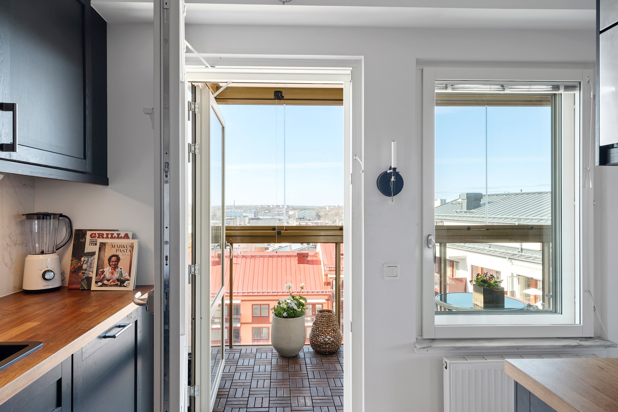 Högt läge med milsvid utsikt, två stora balkonger och två badrum – ett hem utöver det vanliga!