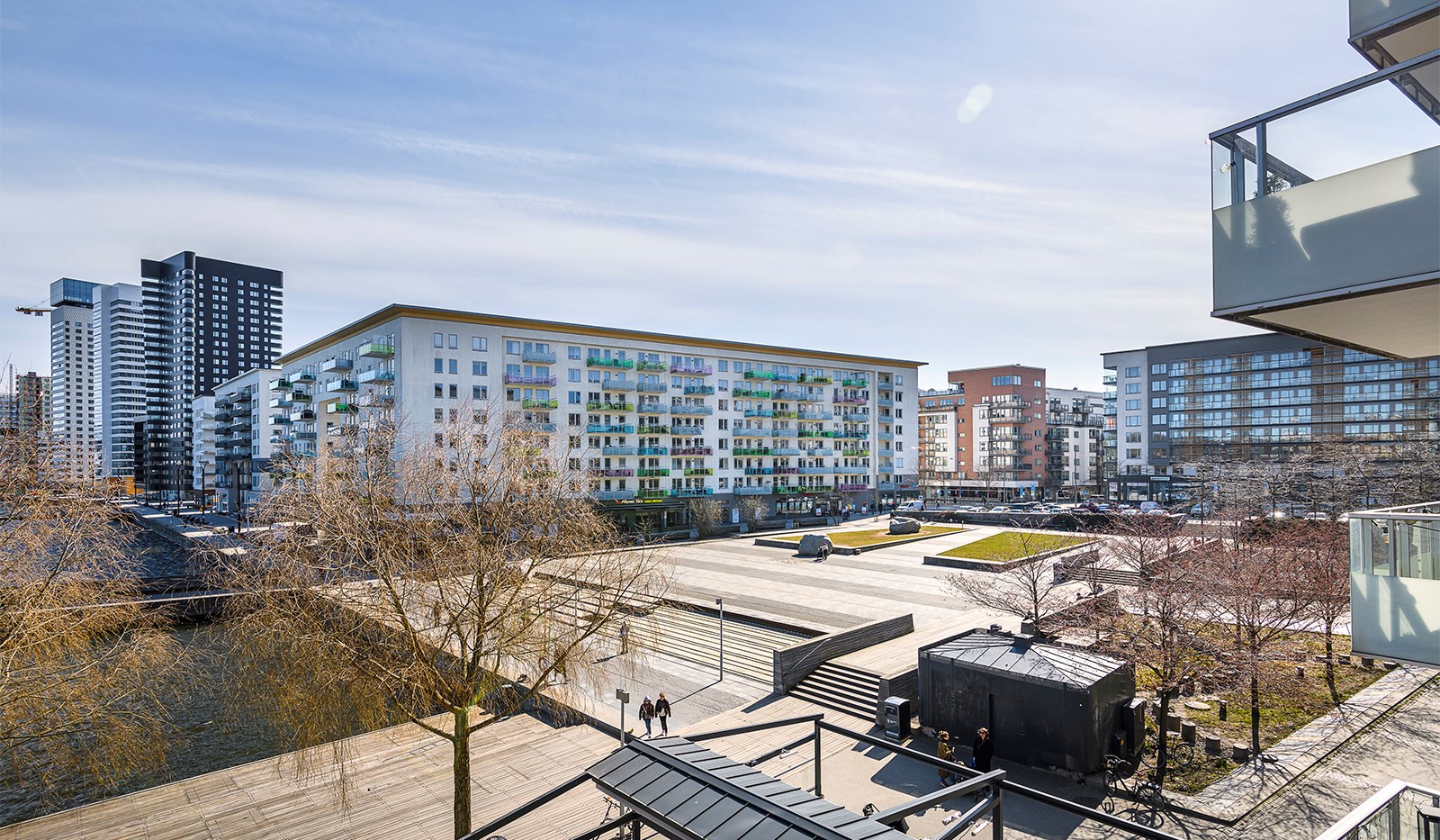 Balkongen blir snabbt en favoritplats! Här sitter du högt med fri utsikt över Årstavikens vatten. Plats finns för utemöbler, växter och kanske en liten grill. Tack vare att huset mittemot är en kontorsfastighet är insynen minimal under kvällar och helger – vilket ger en privat och avkopplande känsla.