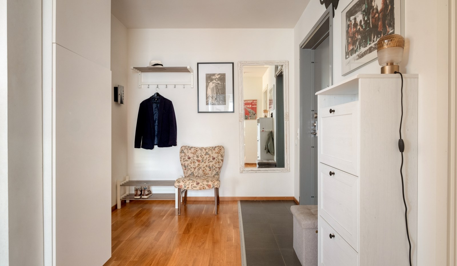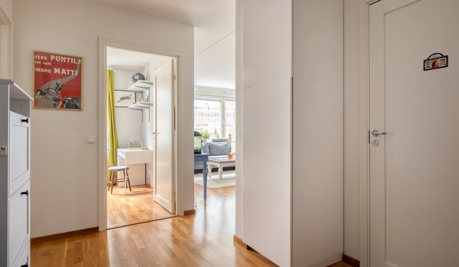 Redan i hallen möts du av en välkomnande och rymlig känsla med gott om plats för ytterkläder och skor. Praktiskt klinkergolv och ekparkett ger ett elegant första intryck. Säkerhetsdörr för trygghet och lugn.