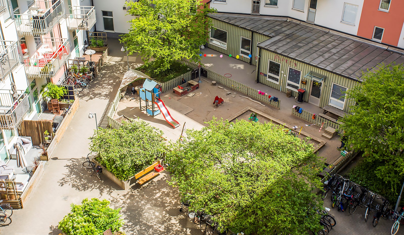 Ny belysning i soprummen. Uppdatering av bevakningssystem i garaget. Lägenheter med balkong/ terrass