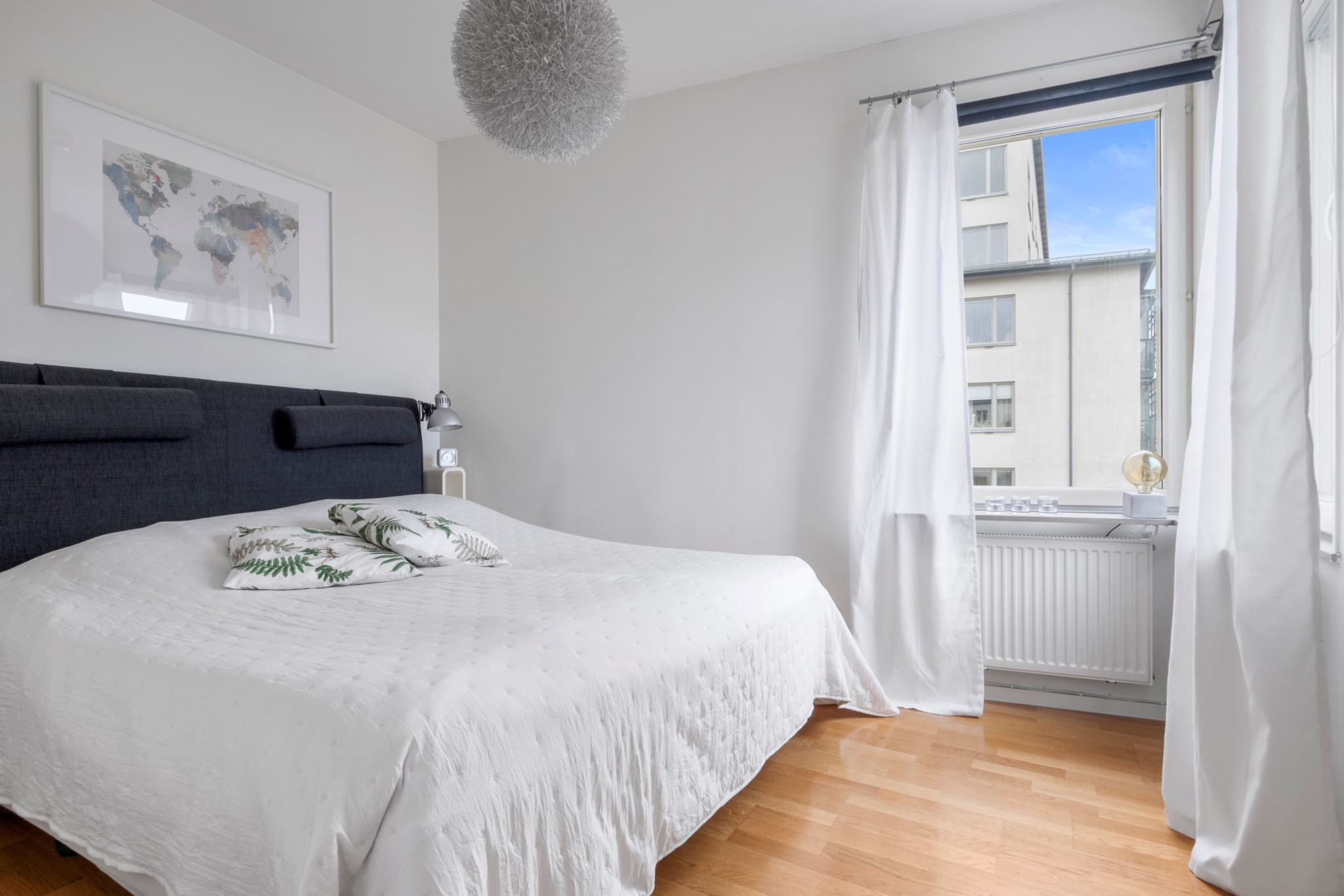 Lägenheten erbjuder klädkammare, smarta sovrum och ett stort helkaklat badrum. Genomgående ekparkett och harmoniska färgval ger en stilren och tidlös helhet.