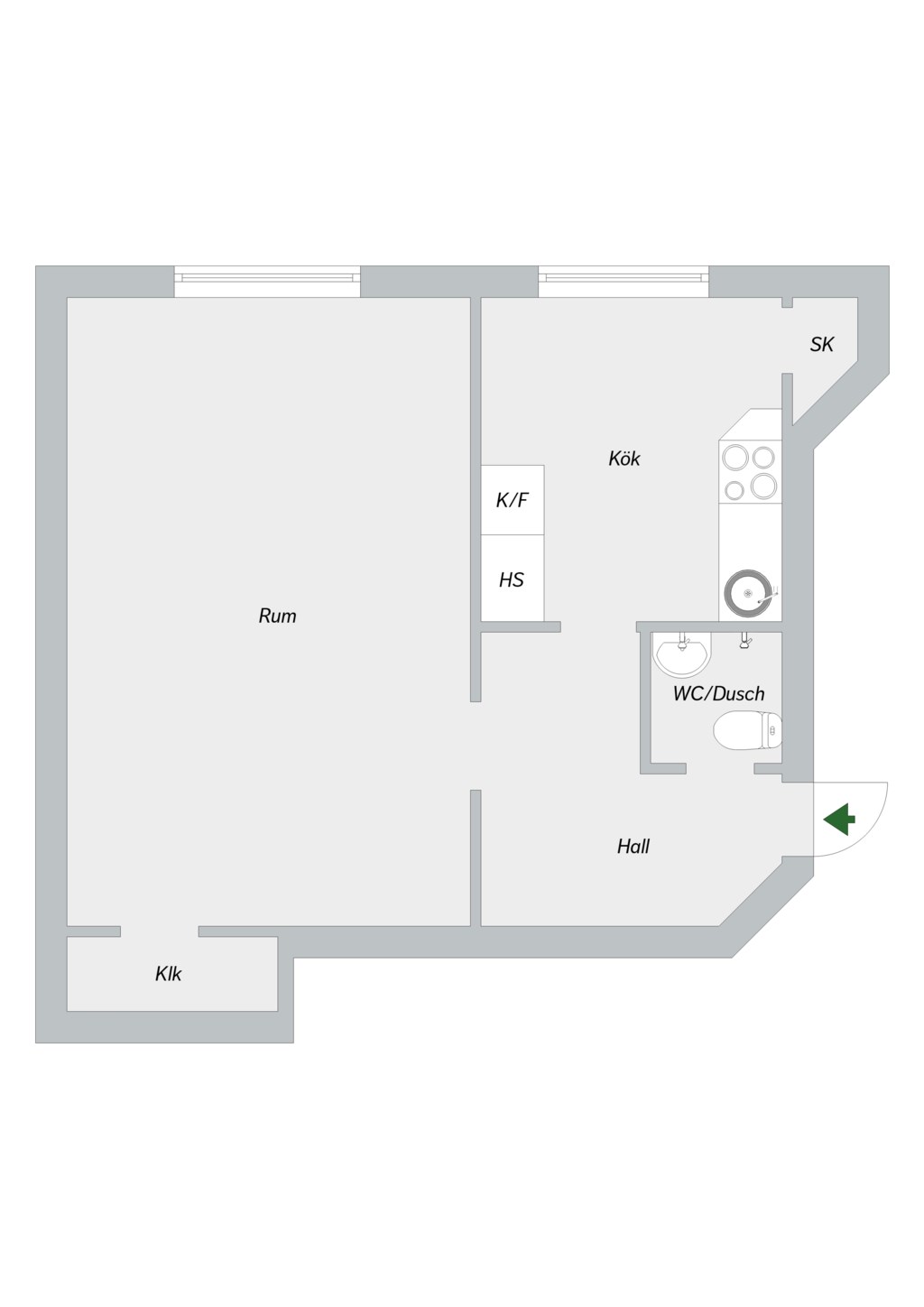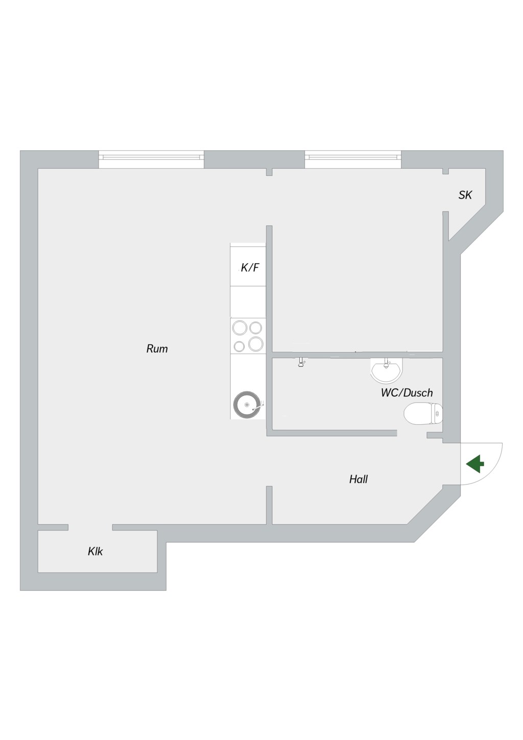 Lägenheten disponeras enligt följande: