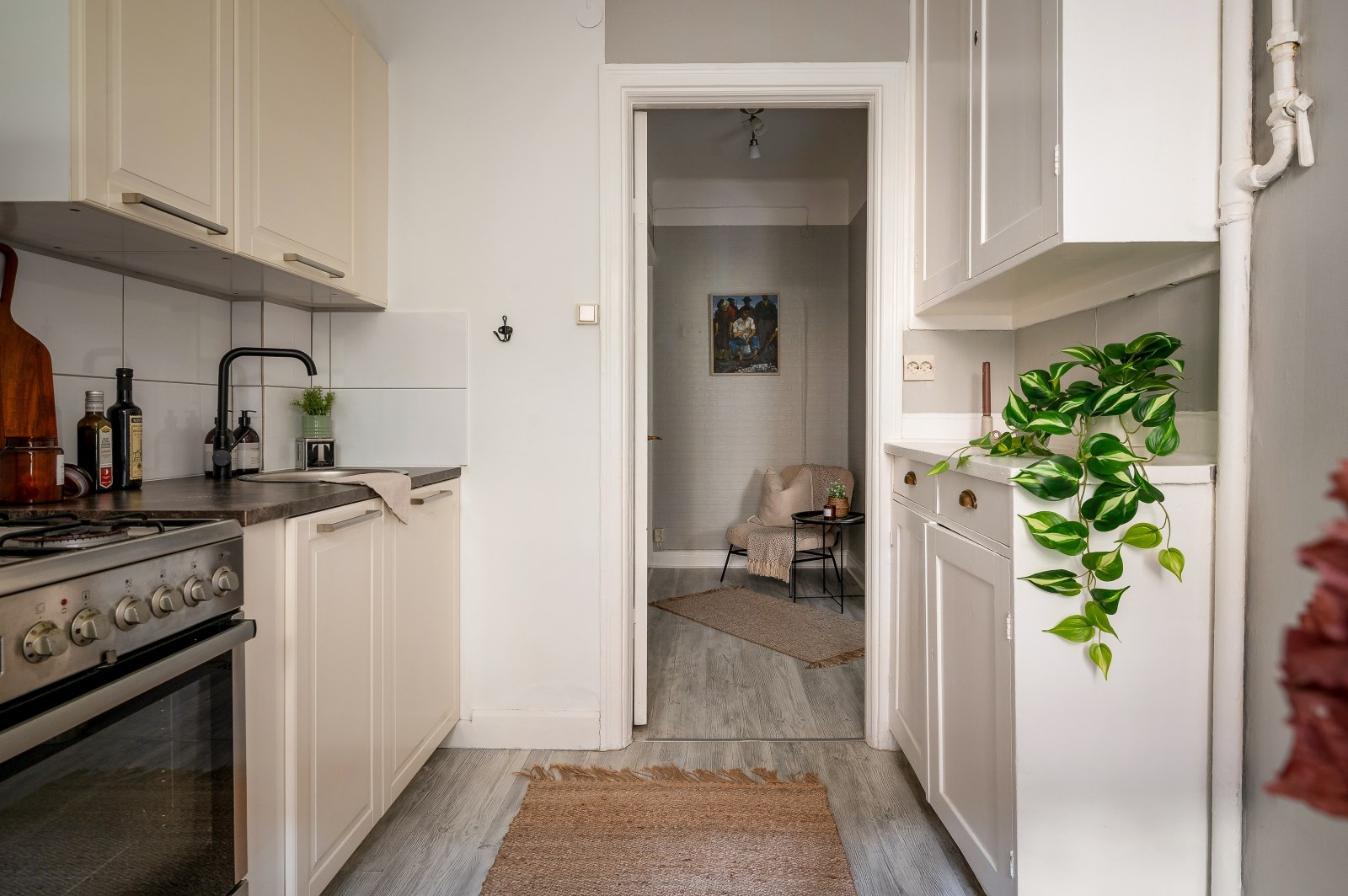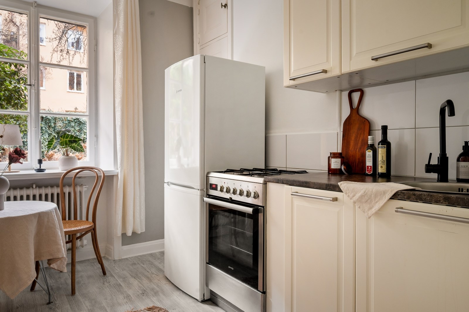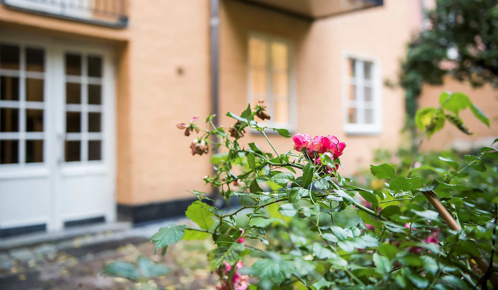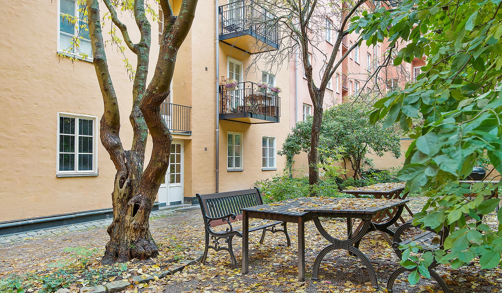 Här erbjuds ett rofyllt boende mot en grön och stillsam innergård i en vacker fastighet med tidstypisk charm. Lägenheten präglas av generös takhöjd, vackra spröjsade fönster med klassiska spanjoletter. Utanför fönstren breder en lugn och skyddad oas ut sig. Lägenheten är belägen i ett av gårdens hörn, vilket skapar en privat och avskild känsla. Det har tidigare funnits bygglov för uteplats och altandörrar, och bostaden kan med omdisponering göras om till en rymlig tvåa