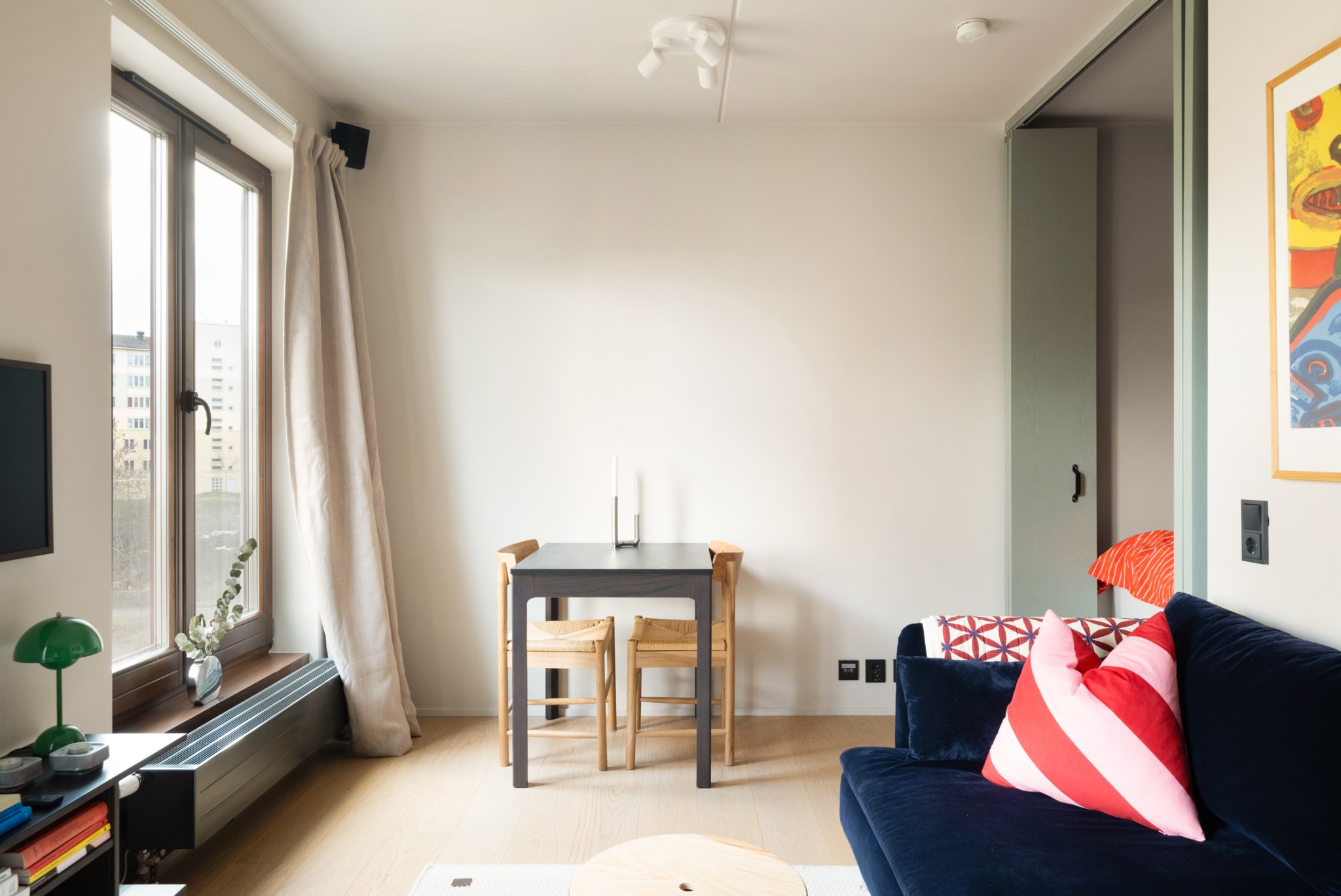 Denna smart planerade 1,5 med sovalkov om 26 kvm erbjuder en genomtänkt och yteffektiv bostad där varje detalj är noggrant utvald. Generösa fönsterpartier med franska balkonger släpper in rikligt med dagsljus och skapar en luftig och inbjudande atmosfär. Lägenheten präglas av kvalitativa materialval, skräddarsydda lösningar och en harmonisk färgsättning som ger ett stilrent helhetsintryck.