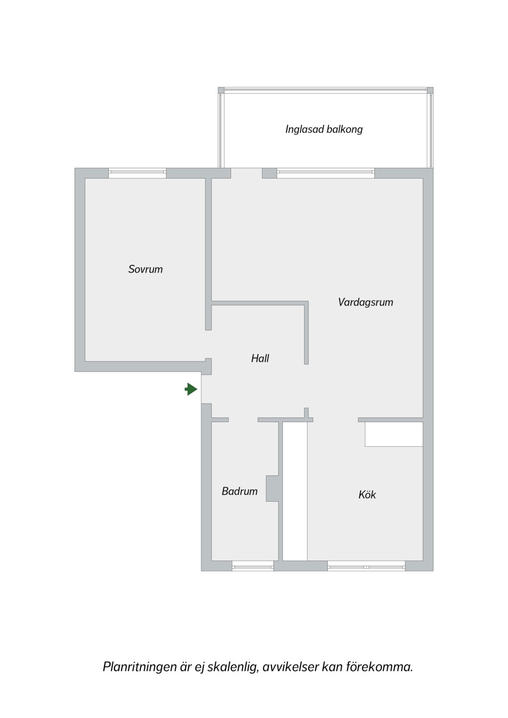 Lägenheten disponeras på följande sätt: