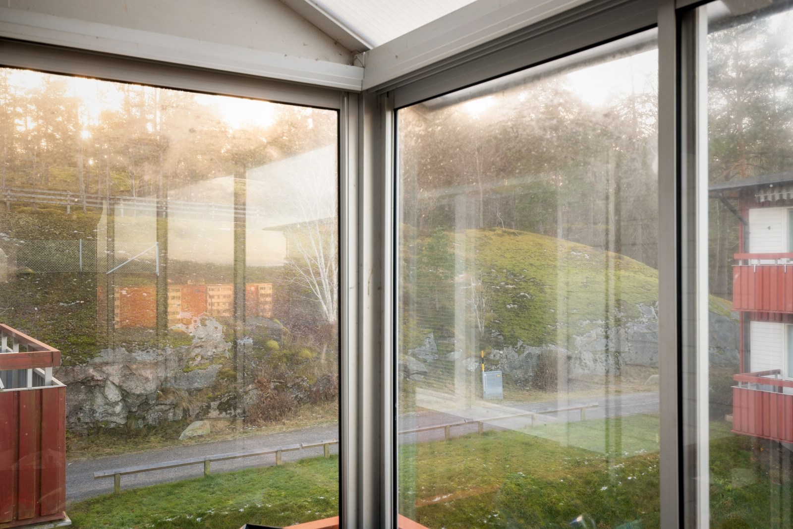 Rymlig inglasad balkong i västerläge.