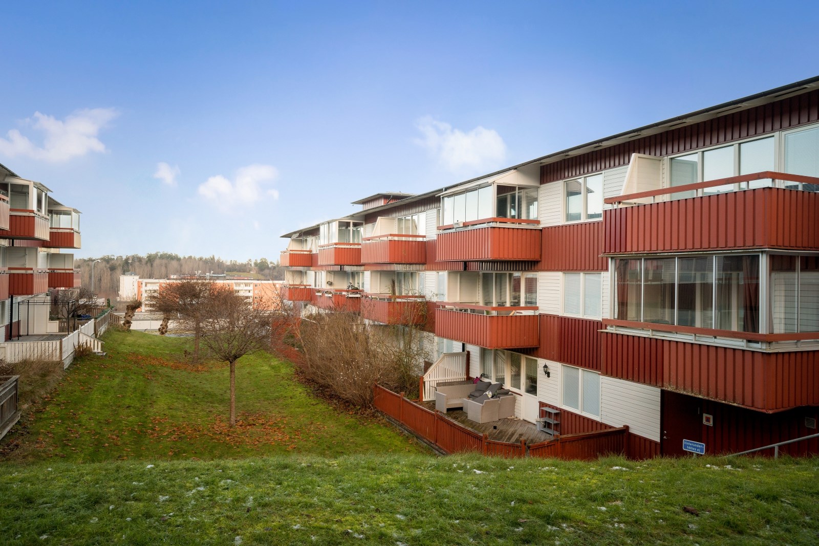 Balkong, uteplats och bilplats