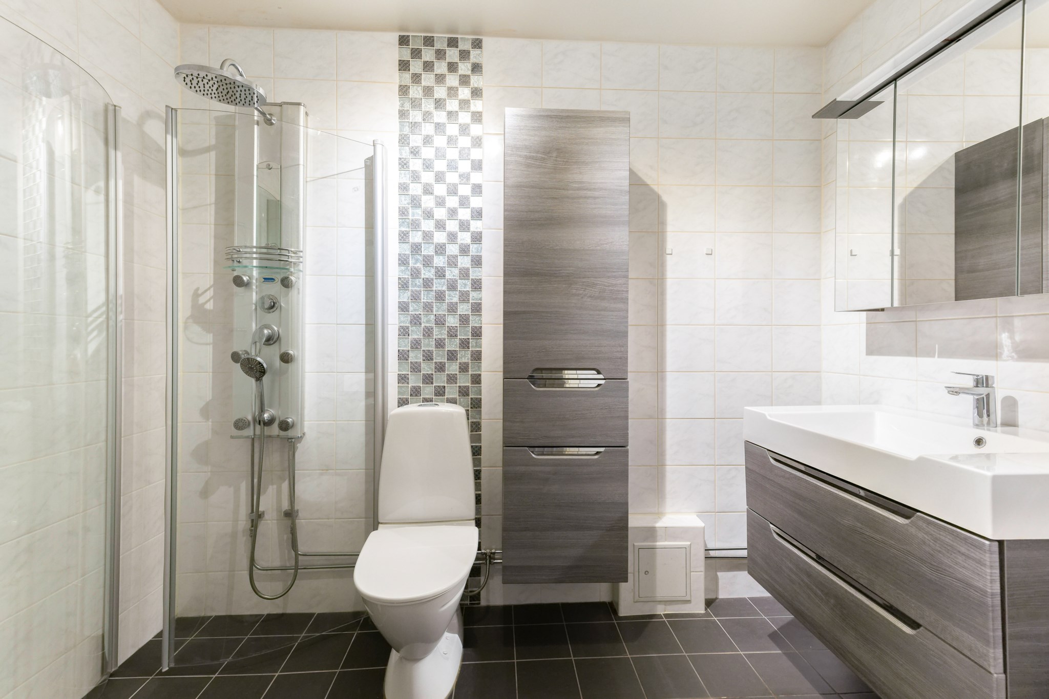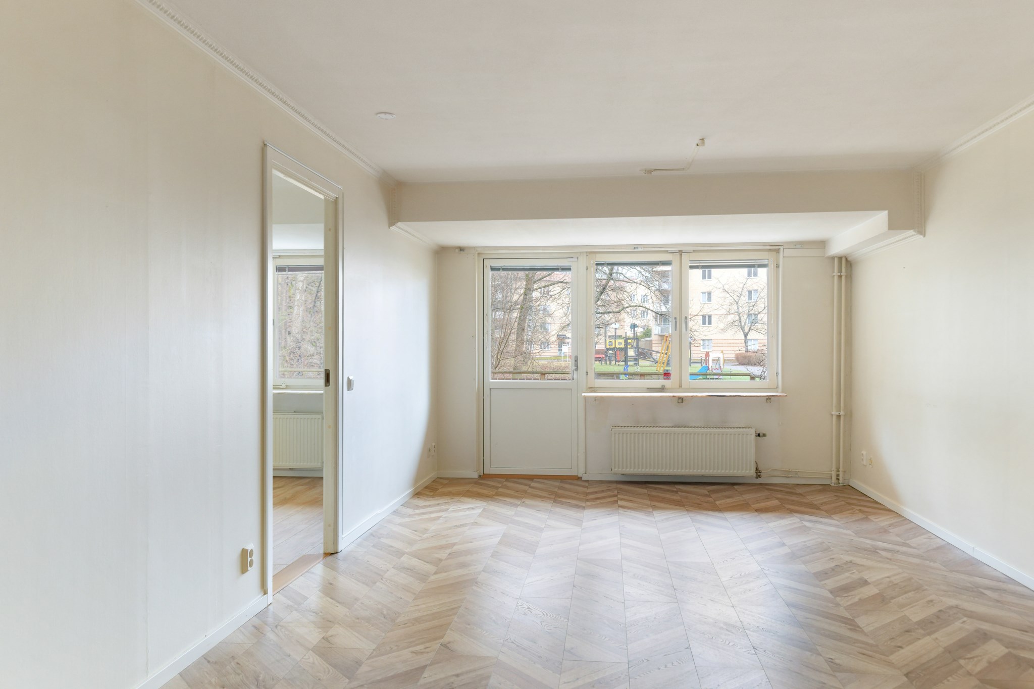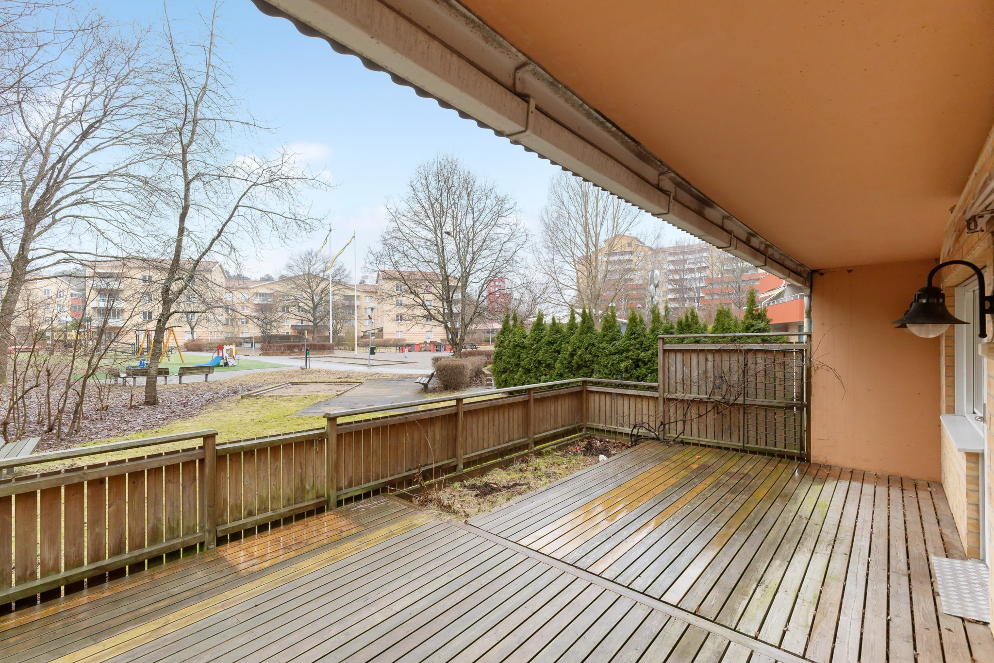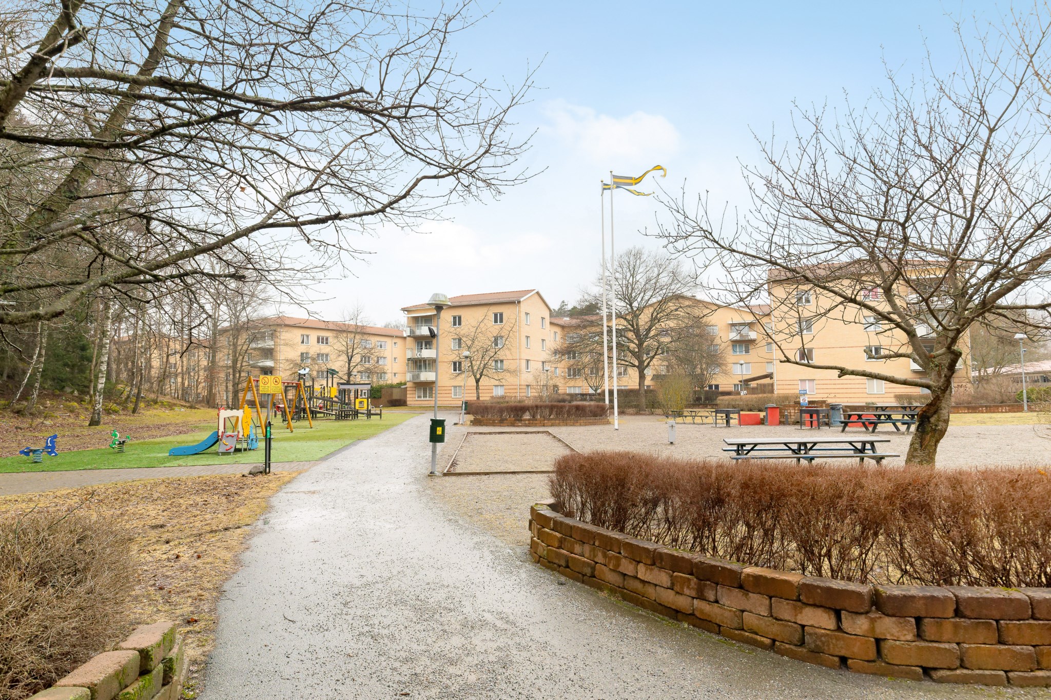Nu finns möjligheten för den som vill förvärva denna välplanerade 3:a där man kan sätta sin egen prägel och skapa sitt drömboende. Bostaden har ett visst renoveringsbehov men med händiga händer kan detta bli en drömbostad. Här erbjuds en rymlig bostad om hela 86 kvm med generösa rum och gott om förvaringsmöjligheter i form av garderober och förråd. Planlösningen innefattar hall i vinkel med garderober och i anslutning till hallen finns även lägenhetens förråd. Helkaklat badrum med golvvärme. Två stora sovrum med garderober. Trevligt kök med matplats samt ett lättmöblerat vardagsrum. Från vardagsrummet nås bostadens rejäla uteplats i soligt sydväst läge som vetter mot föreningens trevliga innergård. Här kan många sköna dagar avnjutas under årets varmare dagar. I samma våningsplan som bostaden finns en tvättstuga och i nedre plan mellan port 9 och 11 finns föreningens pool och gym.
